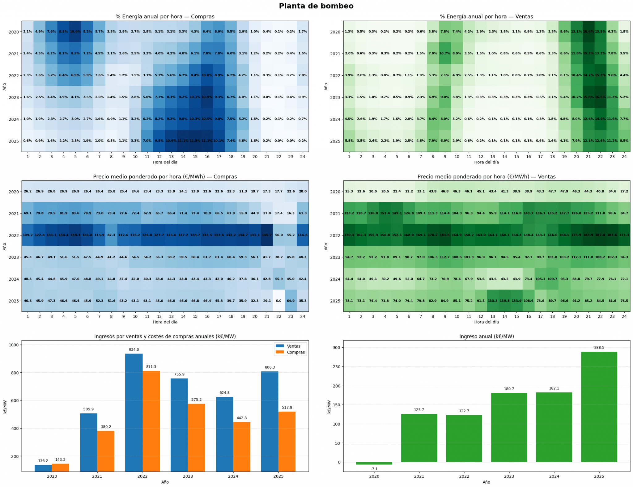 En conjunto, los ingresos anuales reflejan cómo la planta de bombeo ha ido capturando de forma creciente valor económico, aprovechando de manera más eficiente las diferencias temporales de precio observadas en sus operaciones casadas. El resultado pone de manifiesto el papel cada vez más relevante de la flexibilidad operativa del almacenamiento hidráulico dentro del sistema eléctrico, desde la perspectiva concreta de esta instalación.