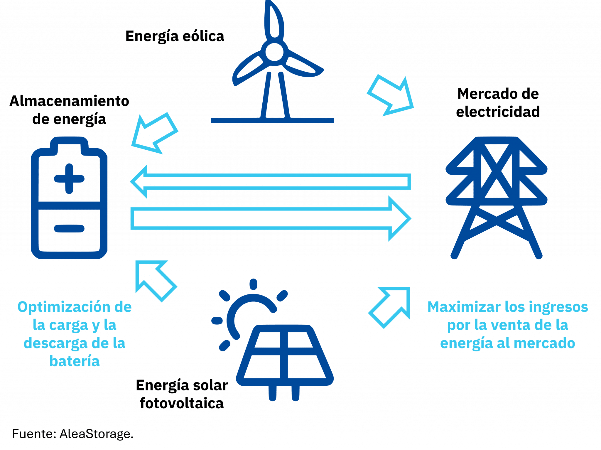 En instalaciones híbridas, la batería actúa como regulador del flujo energético, almacenando cuando hay exceso y entregando cuando se puede vender mejor la energía. Esto mejora la rentabilidad del conjunto y da acceso a ingresos más diversificados.
