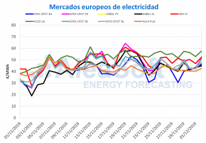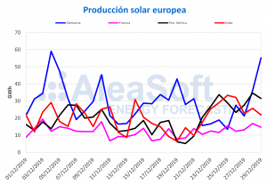 AleaSoft, 30 de diciembre de 2019. La semana del 23 de diciembre ha comenzado con una mayor producción solar en los mercados europeos, con la