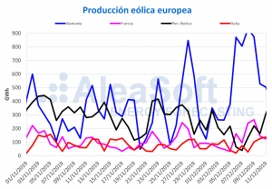 AleaSoft, 5 de diciembre de 2019. La producción solar ha subido esta semana en la mayoría de los mercados europeos. En cambio, la producción eólica