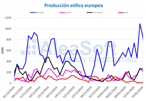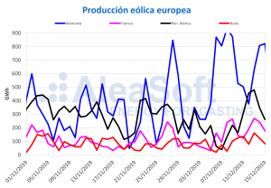 AleaSoft, 23 de diciembre de 2019. La semana del 16 de diciembre ha continuado con baja producción solar y eólica en la mayoría de los