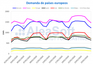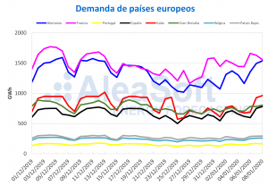 AleaSoft, 27 de enero de 2020. Esta semana se espera que los precios de los mercados eléctricos europeos bajen, debido a temperaturas menos frías y
