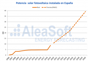 AleaSoft, 15 de enero de 2020. La tecnología solar fotovoltaica ha pasado etapas de crecimiento y otras menos favorables en España, pero, sin duda, la