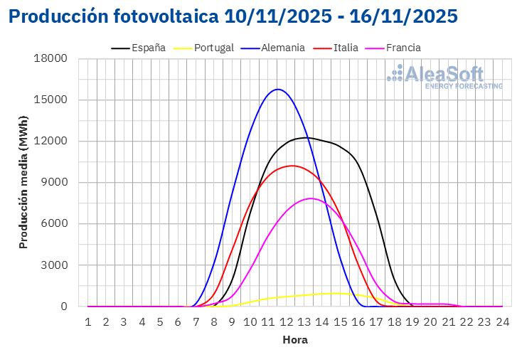 Fuente: Elaborado por AleaSoft Energy Forecasting con datos de ENTSO-E, RTE, REN, Red Eléctrica y TERNA.