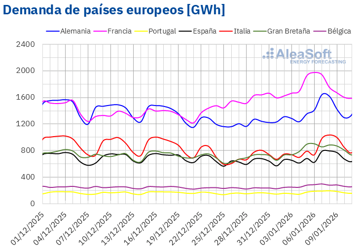 Para la semana del 12 de enero, según las previsiones de demanda de AleaSoft Energy Forecasting, la demanda continuará la tendencia al alza en los mercados de Alemania, España e Italia. Por el contrario, los mercados de Francia, Portugal, Gran Bretaña y Bélgica registrarán descensos en la demanda.