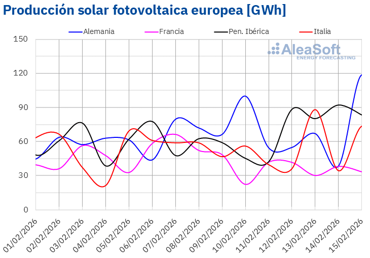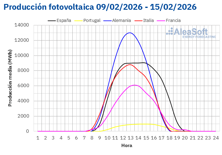 Durante la semana del 16 de febrero, según las previsiones de producción solar de AleaSoft Energy Forecasting, la producción aumentará en los mercados alemán, italiano y español.
