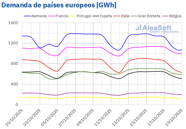 Para la semana del 20 de octubre, según las previsiones de demanda de AleaSoft Energy Forecasting, la demanda aumentará en los principales mercados europeos.