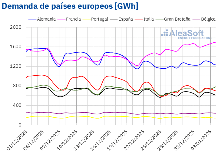 Para la semana del 5 de enero, según las previsiones de demanda de AleaSoft Energy Forecasting, la tendencia positiva continuará y la demanda aumentará en los principales mercados europeos.