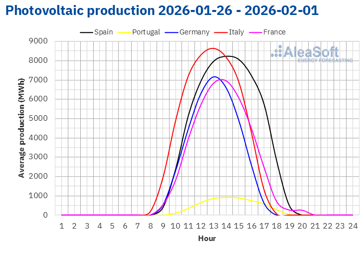 Source: Prepared by AleaSoft Energy Forecasting using data from ENTSO-E, RTE, REN, Red Eléctrica and TERNA.