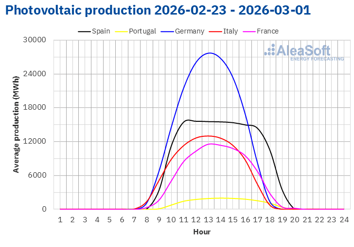 Source: Prepared by AleaSoft Energy Forecasting using data from ENTSO-E, RTE, REN, Red Eléctrica and TERNA.