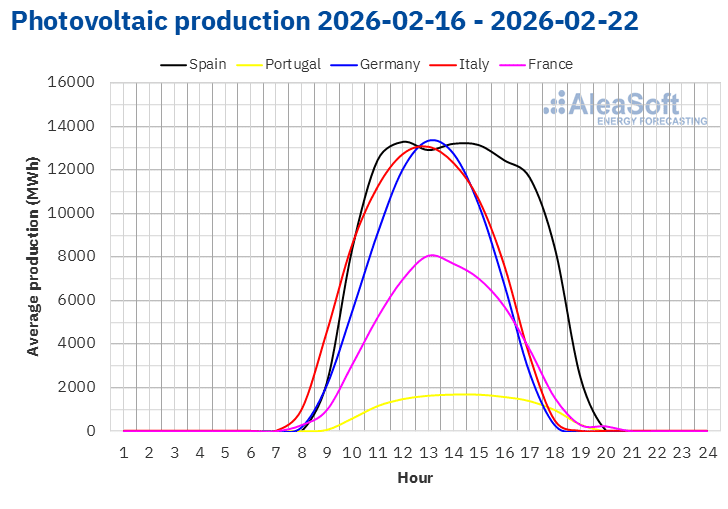 Source: Prepared by AleaSoft Energy Forecasting using data from ENTSO-E, RTE, REN, Red Eléctrica and TERNA.