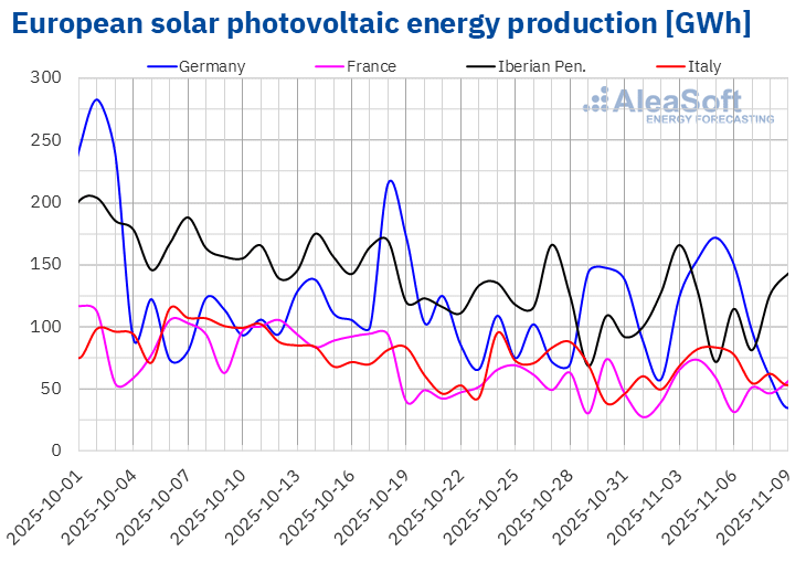 Source : Préparé par AleaSoft Energy Forecasting à partir des données fournies par ENTSO-E, RTE, REN, REE et TERNA.