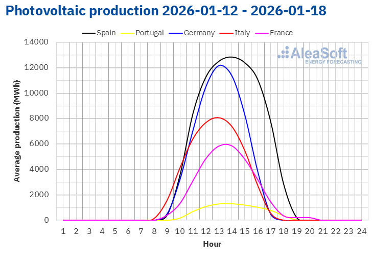 For the week of January 19, according to AleaSoft Energy Forecasting’s solar energy forecasts, production will increase in the German and Spanish markets compared to the previous week. By contrast, solar energy production will decline in the Italian market.