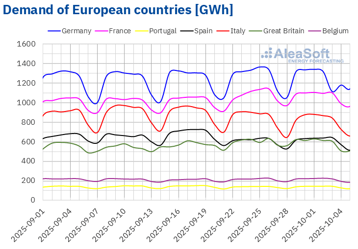For the week of October 6, AleaSoft Energy Forecasting’s demand forecasts indicate that demand will decrease in most major European markets. However, demand will increase in Portugal and Germany.